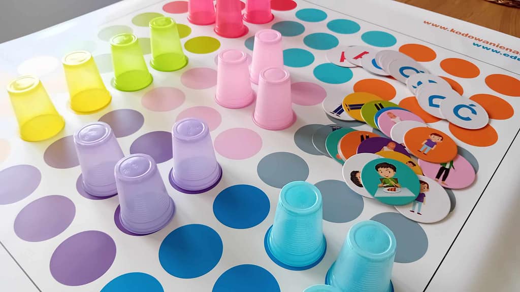 Narzędzia dydaktyczne na jakich pracujemy to przede wszystkim: maty do kodowania, tematyczne krążki, pionki, kubeczki, roboty edukacyjne i inne. Narzędzie te wspomagają treści, które opracowywane są na zajęciach przedszkolnych.